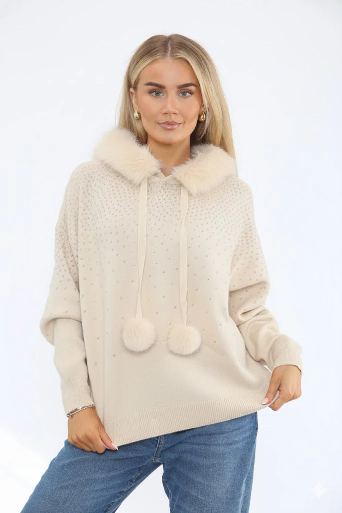 Sparkle Faux Fur Trim Hoody Vanilla
