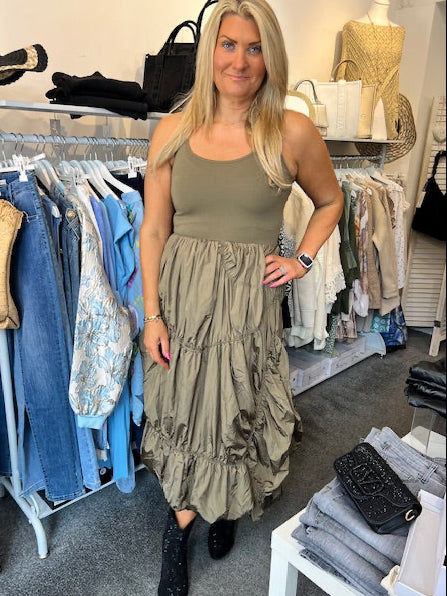 Taffeta Skirt Dress Olive