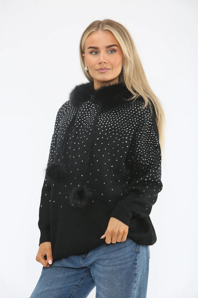 LUXURIOUS SPARKLE FAUX FUR TRIMMED HOODY